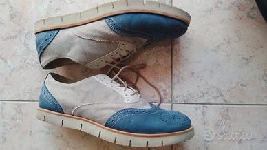 Scarpe "monellina" per bambino/a nr.37 in pelle scamosciata traforata azzurra e tela. Usate solo in occasione di cerimonie. Comode con soletta in gomma.