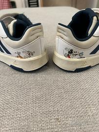 Scarpe Bambino Adidas Disney Mickey Mouse Tensaur Sport Numero 25,5 bianche a strisce blu con stampe personaggi Disney. In ottime condizioni, usate pochissimo.