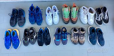 Vendo IN BLOCCO a euro 45 trattabili le seguenti scarpe : 1* fila da sx Nike nr 36 Mizuno calcio nr 35 Scarpe nr 36 Nike blu nr 36 Scarponcini Tecnica nr 32 Asics nr 36 2* fila da sx Nike nere nr 37.5 Basket blu nr 37 Diadora bianche nr 37 Scarponcini Olang nr 37 Nike Jordan bianche nr 36 Vans nere nr 38 EURO 45 TRATTABILI