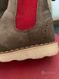 Scarponcini Armani numero 25 Suolanesterna 18cm Chiusura con zip cerniera laterale Bandanelastica rossa ai lati esterni Ottime le condizioni