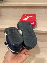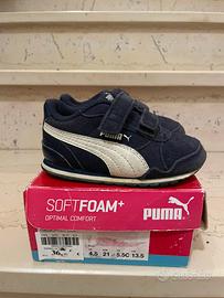 Le scarpe per bambino, marca PUMA, taglia 21, colore blu scuro. Molto comodo con SOFT FOAM+ di indossare. Usato per una stagione e rimane in buone condizioni.
