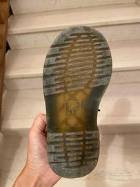 Le scarpe per bambino, marca Dr’Martens , taglia 24, colore bordeaux/nero. La parte punti dei piedi ha perso colore nero ma le scarpe rimangono in buone condizioni. Molto carino per la stagione autunnale e invernale.