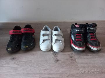 Vendo scarpe da bambino TG 32 ben conservate. Ducati le nere, Adidas le bianche e Geox Venom le ultime a destra.