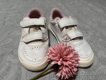 Scarpe da ginnastica bianche per bambina, leggere e comode, perfette per l’asilo o per camminare in libertà.