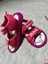 Sandali estivi per bambina con stampa Minnie Mouse, colore rosa acceso.