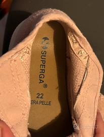 Vendo scarpe della Superga rosa usate ma in buone condizioni generali, numero 22 di vera pelle.