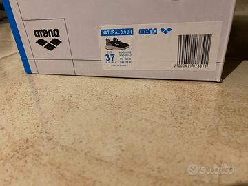 Come da titolo vendo scarpe Junior della Arena, Arena Natural 3.0 JR taglia 37, CM 21.5. Scarpe usate solo 3 volte in palestra a scuola mai all’aperto. Praticamente nuove.
