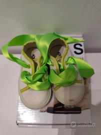Scarpe Superga style S13T642/GL, numero 20, colore bianco con lacci nastro verde.