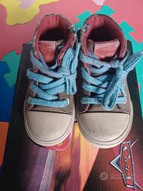 - Un paio di sneakers grigie con lacci blu Chicco.
