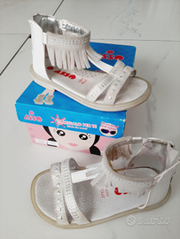Sandali in vera pelle color beige e bianco con chiusura dietro a zip marca Asso 5 Euro