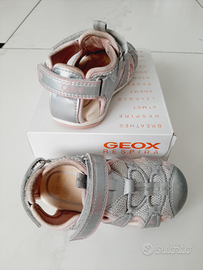 Sandali Geox grigie e rosa con plantare in pelle con sistema respira di Geox, chiusura a strappo sia dietro che davanti Euro 15