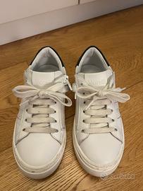 Scarpe come nuove, usate poche volte, in pelle bianca, nr 33, con cerniera e lacci