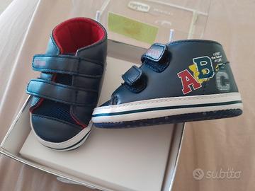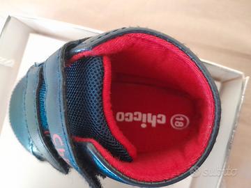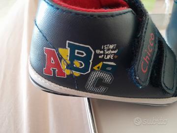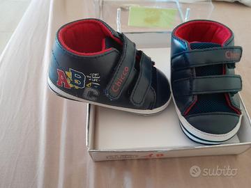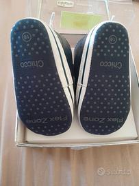 Bebe Huggie CHICCO numeto 18, chiusura con velcro/strappo per una facile applicazione e rimozione. Di colore blu e costruzione leggera, sono ideali per i piedini dei bimbi. Linea elegante e materiali che rispettano le età sensibili.