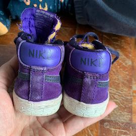 Scarpe bimbo / bimba bellissime viola con lacci e dettagli neri, marca Nike, taglia 21, in renna, usate pochissimo, forse 2 volte.