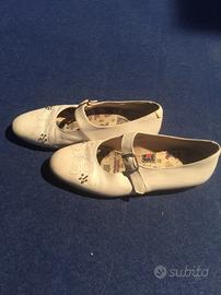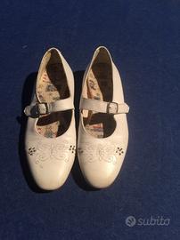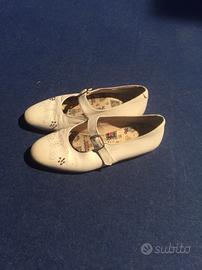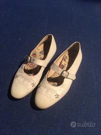Scarpe da bambina per cerimonia/prima comunione con cinturino e ricami sulla punta. Di vero cuoio n. 32.