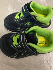 Scarpe sportive della champion di colore nero e verde fosforesente.