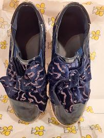 Scarpe seminuove di vernice lucida con fiocco e pailletts per bambina Colore: blu Modello: Lulù Tg.: 34/36