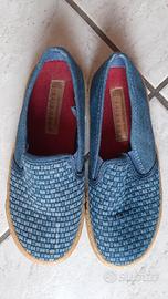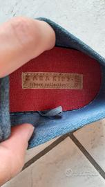 Nuove ma senza cartellino ma mai indossate. Scarpe slip-on da bimbo in tessuto colore jeans con suola di gomma colore beige. Numero 32-33 (lunghezza 22 cm larghezza pianta 7,5 cm). Marca Zara Kids