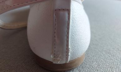 Vendo scarpe da cerimonia marchio Bata taglia 32 colore bianco madreperla con motivo floreale sul davanti e cinghietta da allacciare alla caviglia. Piccoli segni di usura come da foto. Usate in una sola occasione.