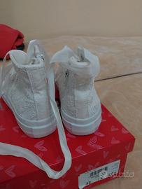 scarpe sneakers da cerimonia indossate da mia figlia sotto l'abito da comunione n 32