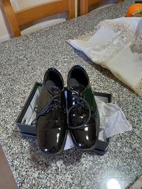vendo scarpe da cerimonia per bambino nuove usate una sola volta ancora nella scatola originale comprate per abbinarlo al vestito di carnevale dell'ufficiale della marina numero 28 e 30 prezzo