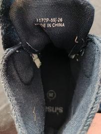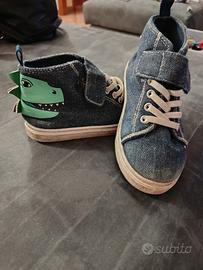 Vendo scarpe da ginnastica alte in jeans per bambino, n. 26, con simpatico ricamo di dinosauro. Sono in buone condizioni.