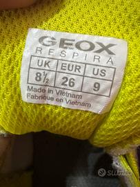 Scarpe da ginnastica Geox per bambino. - Colore giallo vivace. - Chiusura con velcro e lacci elastici. - Tomaia in mesh traspirante. - Usate poco ma tenute bene. - Numero 26. Vendo a 10€