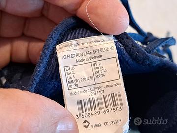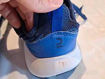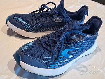 Scarpe da ginnastica per ragazza e ragazzo AT FLEX flessibili e leggere con lacci blu Quechua. - Tomaia in mesh traspirante. - Suola flessibile e ammortizzata. - Design sportivo con dettagli a contrasto. - Lunghezza piede 24cm - Prezzo nuove 24,99€