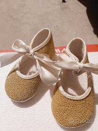 scarpe da neonata per cerimonia in glitter dorato numero 20 nuove mai usate