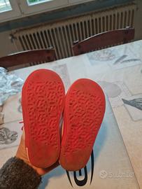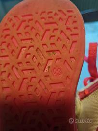 Scarpe da ginnastica in tela per bambini, taglia 23. Perfette per l'uso quotidiano. - Tomaia in tela color crema. - Lacci e fodera interna fucsia. - Suola in gomma rossa.