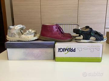 Vendo scarpe e sandali usati ben conservati, lavati, di varie misure per bimbo e bimba. Suole in ordine. Le Geox da cerimonia sono stare usate una sola volta sono comode ed eleganti come anche gli scarponcini per bimba. Info prezzi e numeri in foto.
