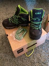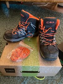 Disponibili come da foto - Stivaletto CMP Kids Ridgel Mid taglia 28 (lacci verdi) - Stivaletto CMP Kids Ridgel Mid taglia 29 (lacci arancioni) - Scarpa Lytos Rigi Jab Kid Jam Evo taglia 30 (scarpa bassa) Usate ma tutte in ottimo stato Suole integre, no strappi etc. Impermeabili (bollino waterproof) ed adatte sia in primavera/estate che in autunno/inverno Se interessati possibilità di vederle e provarle a Bergamo Prezzo: 20€/ciascuna