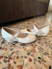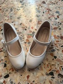 Scarpe elegante per cerimonia da bambina colore perla chiaro con tacco n.32