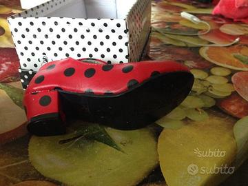 Scarpe originali spagnole rosse con pois neri con tacco mai state usate con la sua scatola taglia 27