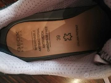 Scarpe Geox n. 39 nere con lacci rosa con luci e/o scritta luminosa, che è possibile personalizzare con scritte o simboli attraverso collegamento all'app Geox, o spegnere o lasciare standard. Cavetto doppio di ricarica per le 2 scarpe, In ottimo stato usate pochissimo, veramente un affare, il piede è cresciuto. Interno in cuoio come nuovo. Il prezzo originale era intorno agli 80 euro.