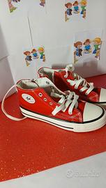 Scarpe nuove da ginnastica tipo converse colore rosso/bianco Numero 34 con cerniera laterale MAI usate all esterno NUOVE