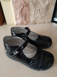 Scarpe bambina n. 26 Lulu, vera pelle (lucida) con lacciolino regolabile a strappo. Suola in gomma.
