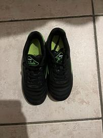 Scarpe da bimbo da calcio di marca joma taglia 31 di colore nere con logo e dettagli in verde in ottime condizioni vendita per inutilizzo e a un prezzo bassissimo