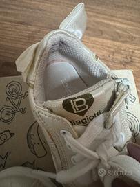 Scarpe Laura Biagiotti utilizzate poche volte colore beige chiusura zip e con lacci . Numero 20 . Fiocco applicato sul retro delle scarpe