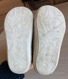 Vendo scarpe Naturino in pelle numero 21 usate due volte per i primissimi passi (perchè poi ha cambiato subito numero) quasi non ci ha camminato quindi praticamente nuove, come si vede anche da suole e solette interne in foto