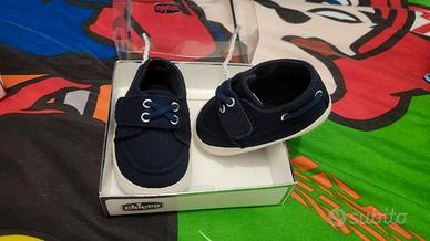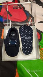 causa crescita vendo scarpe chicco senza suola colore blu stile mocassino numero 19 usate ma tenute bene, con scatola originale