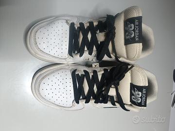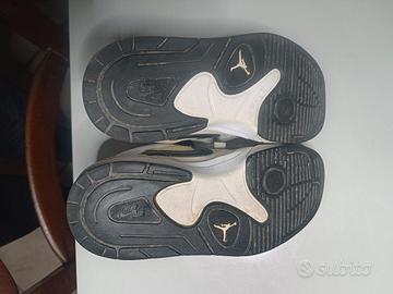 scarpe bianche con logo nero Nike air Jordan n 38. scarpe usate pochissimo x cambio numero. posso spedire. condizioni ottime come si vede in foto.