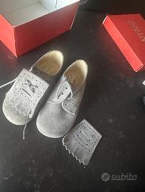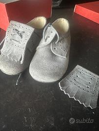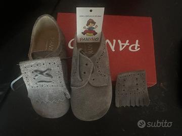 Scarpe Panyno Made in Spain numero 23 bambino . Panyno scarpina stile Clark con frangetta removibile tra i lacci, impunture a rondine, tomaia in camoscio e fodera interamente in pelle.
