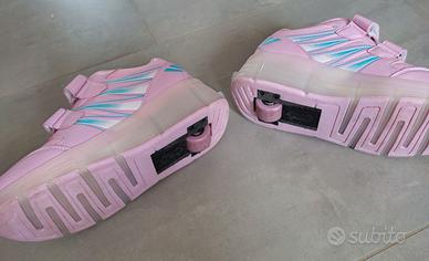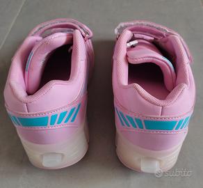 Scarpette ginniche D-Bulun Kids taglia 37 di piede, con suole luminose (led colorati). Le scarpe a piacimento diventano pattini. Nascosta nel tallone c'è la rotella.