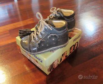 Scarpine primi passi primigi per bimba. Colore grigio con laccetti e cerniera laterale. Adatte per i primi passi della bimba in tutta tranquillità.