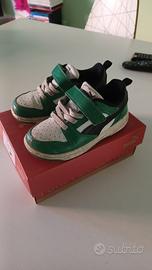 Scarpe da ginnastica Puma originali bianche e verdi da bimbo. Taglia 25
