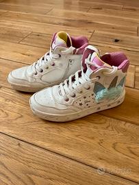 Sneakers alte marca Geox colore bianco/lilla misura 35. Le scarpe sono state indossate e non presentano difetti o scuciture. Hanno una zip laterale per facilitare la calzata. Non è presente la scatola originale. Sono state igienizzate prima della vendita #geox #scarpe #scarpebambina #35 #trentacinque #bianco #lacci