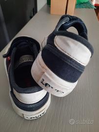 Scarpe sneakers basse n. 26 di colore blu, tessuto tela tipo jeans, protezione sulla punta in gomma bianca. Chiusura con strap della Levis.