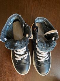 Scarpe sportive alte in vera pelle morbidissima blu traforata. Perfette per primavera estate. Marca Armani junior taglia 36. Originali. Usate pochissimo