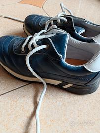 Scarpe sportive di vero cuoio per bambino indossate una volta, di colore blu scuro e numero 32 praticamente come nuove.